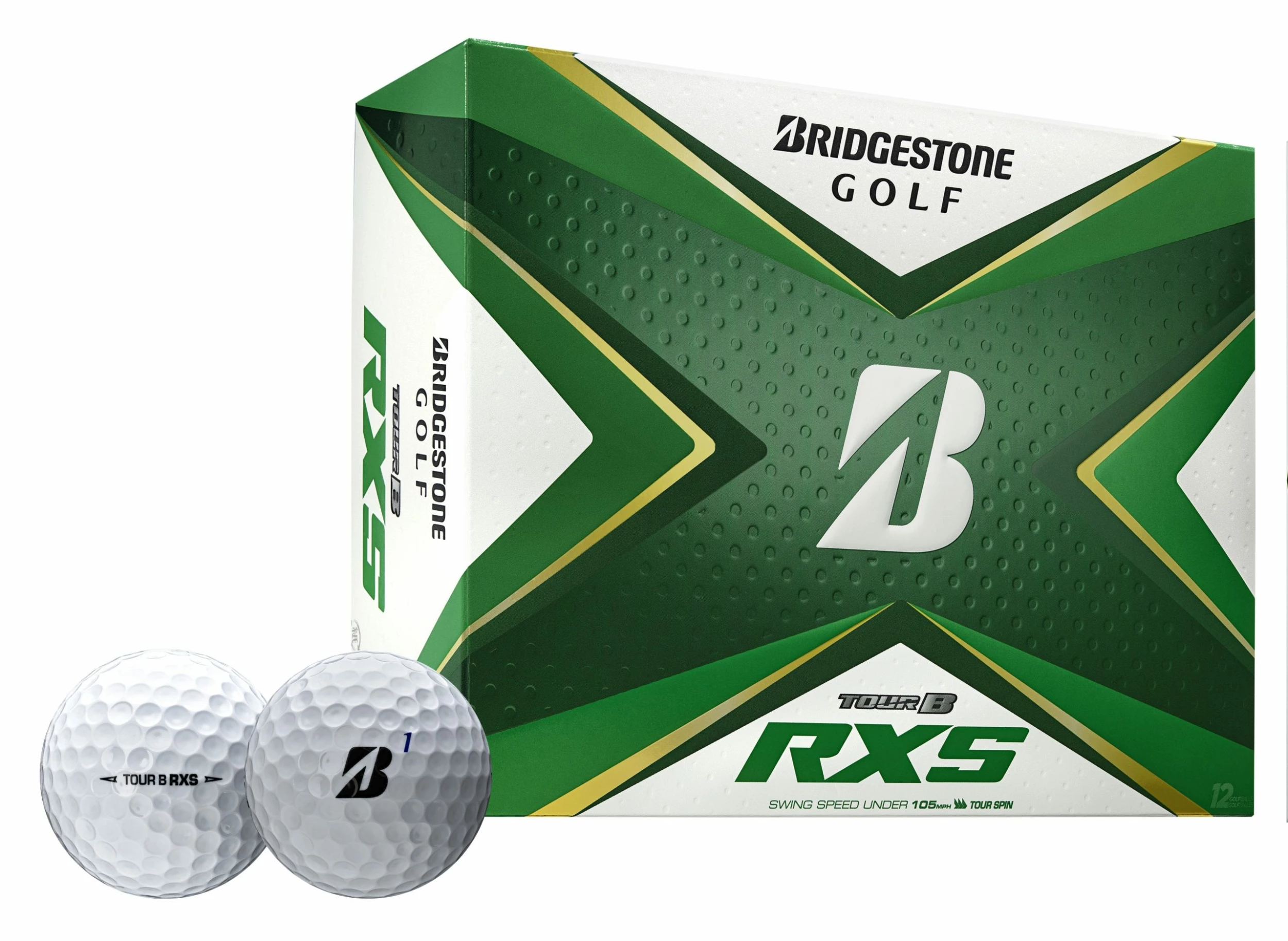 We have reinvented the TOUR B RXS to feature our new REACTIV cover technology. Until now you had to choose more distance or more spin. With REACTIV you can now get more distance and more spin out of the same golf ball. Designed to fit golfers with swing speeds under 105mph, the new TOUR B RXS has softer feel and maximum greenside spin, allowing you to stop approach and pitch shots on a dime. Validated professionally by Fred Couples and Rocco Mediate.